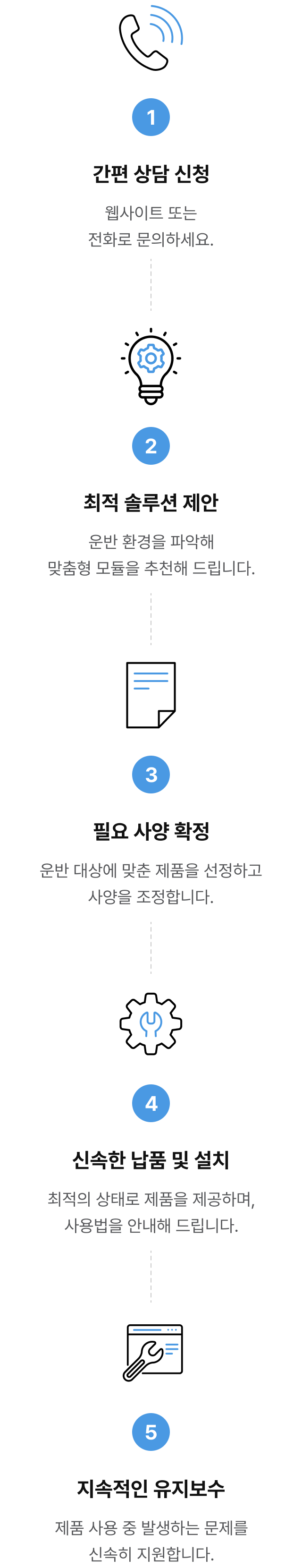 기존 장비를 손쉽게 시스템으로 업그레이드하여, 보다 가볍고 안전하게 물품을 이동할 수 있도록 돕습니다.