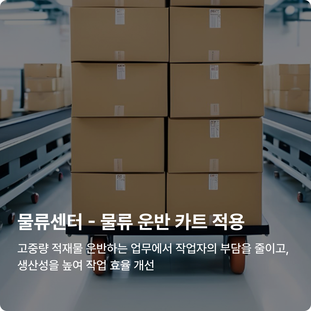 물류센터 - 물류 운반 카트 적용 고중량 적재물 운반하는 업무에서 작업자의 부담을 줄이고,
