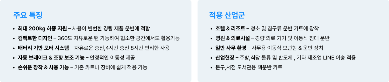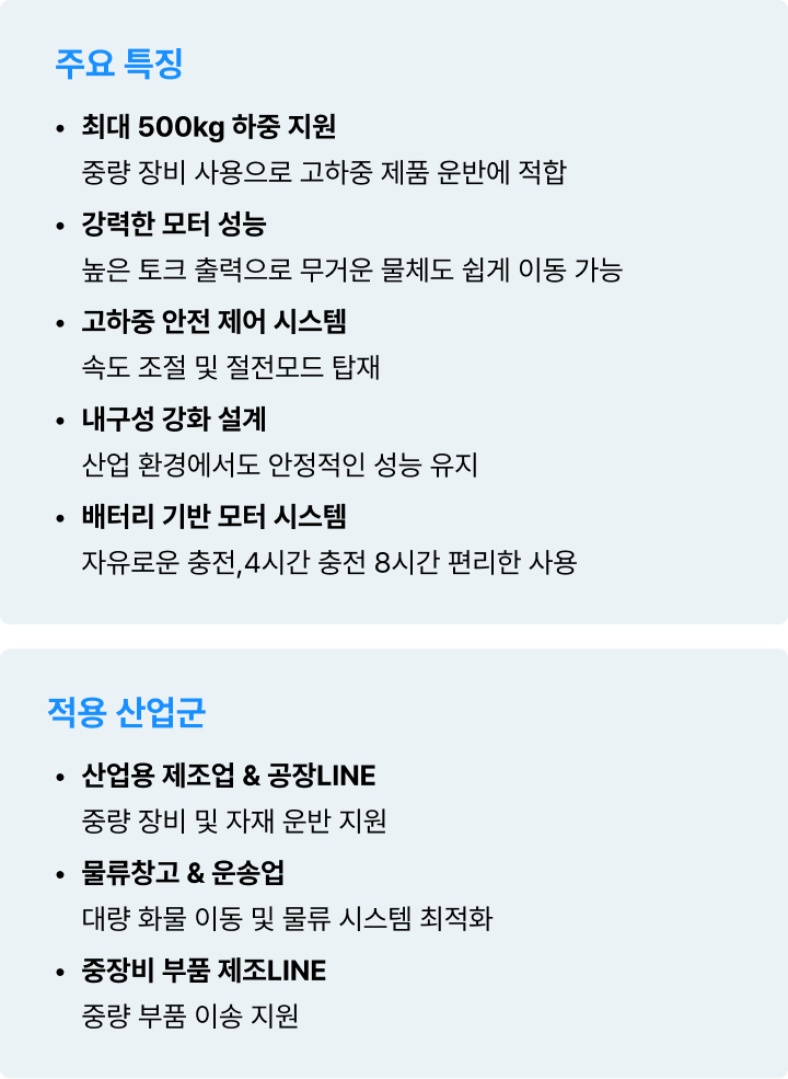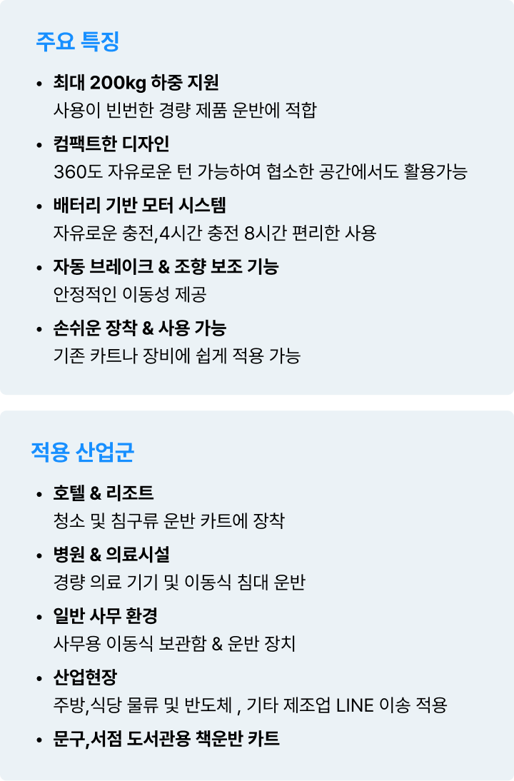 더 안정적으로 무거운 제품을 편리하게 사용하고, 작업 부담을 줄여 이동의 효율성을 높이는 혁신적인 솔루션입니다.